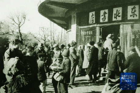 1948年沈陽解放后,東北書店馬路灣門市店吸引了眾多讀者。新華社發(fā)