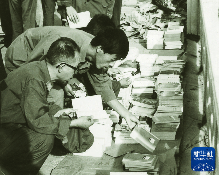1977年恢復高考后,讀者在馬路灣書店購書備考。新華社發(fā)