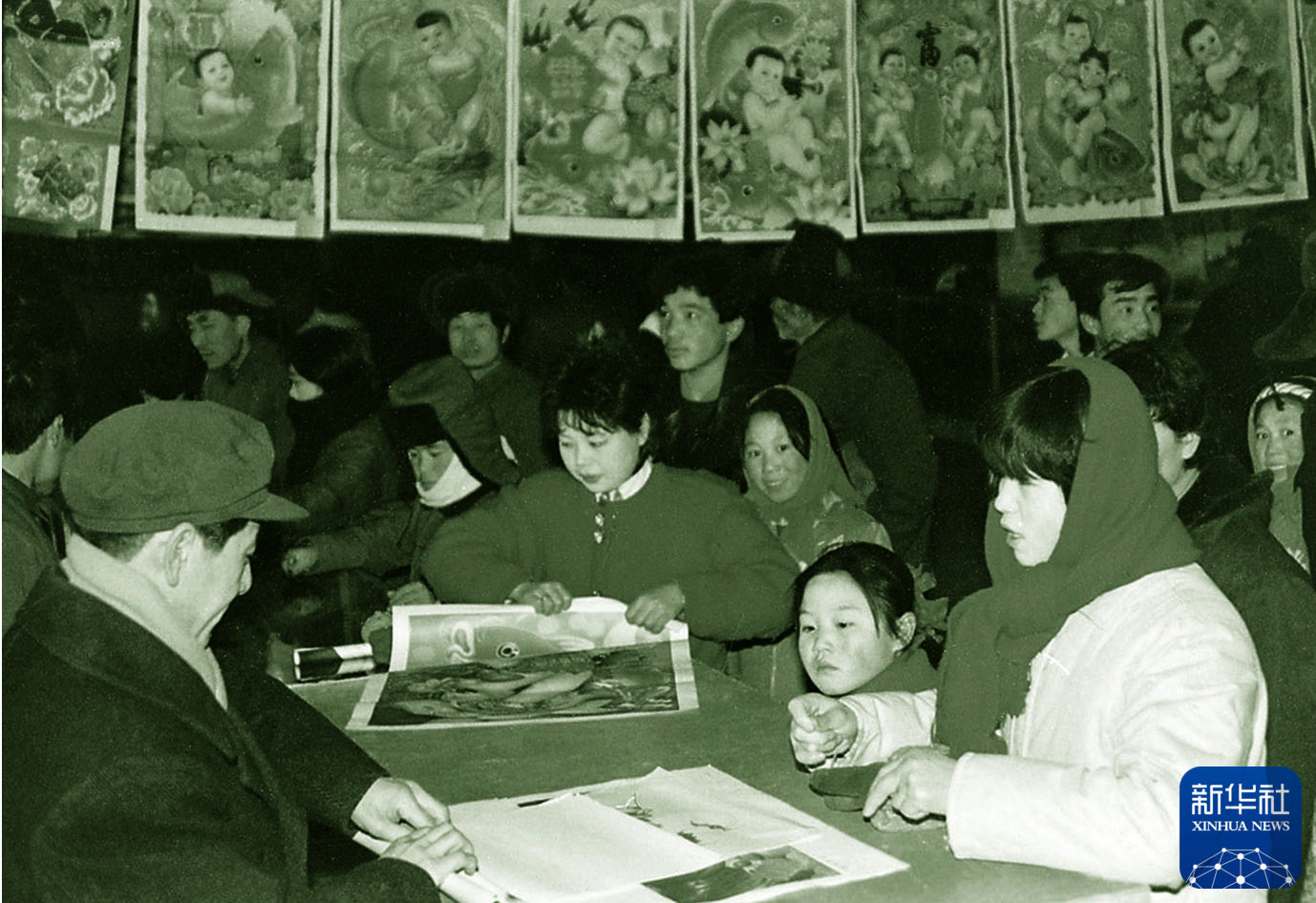 20世紀80年代,人們在馬路灣書店選購年畫。新華社發(fā)